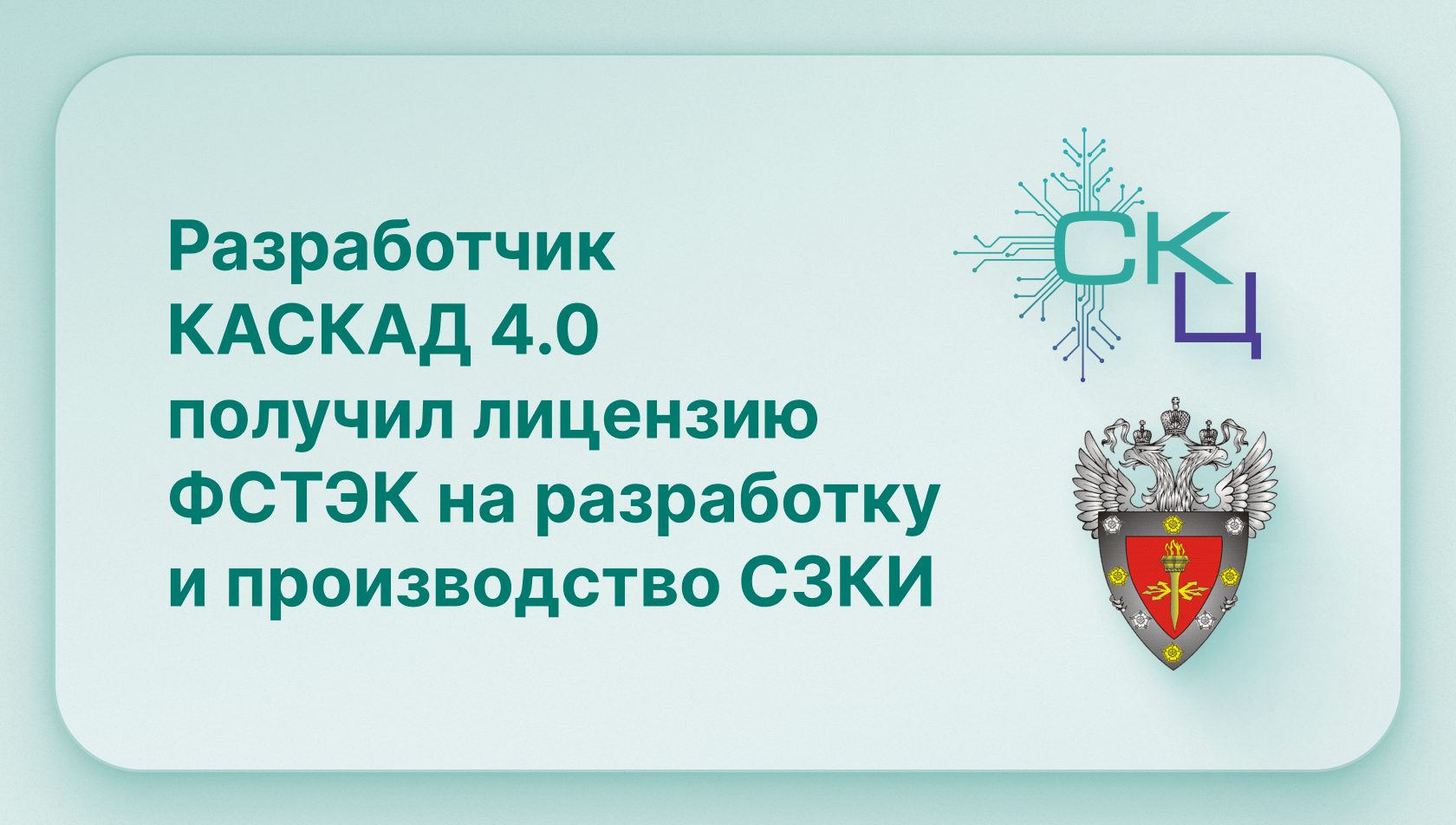 Продолжая наращивать усилия в направлении безопасности, мы рады сообщить, что разработчик продукта КАСКАД 4.0, ООО НИЦ «СКЦ», получил лицензию ФСТЭК на деятельность по разработке и производству средств защиты конфиденциальной информации.